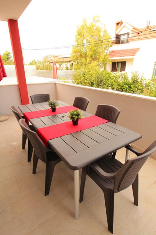 Das Gebäude verfügt über 6 Wohnungen und ein Einfamilienhaus für 8 Personen. Es gibt zwei mit zwei Schlafzimmern, wobei jedes Zimmer über ein eigenes Badezimmer verfügt. Das Haus verfügt über 4 Zimmer. Die anderen vier Wohnungen bestehen aus einem Schlafzimmer, zwei Zustellbetten im Wohnzimmer und einem Badezimmer. Alle sechs Wohnungen verfügen über große Terrassen (ca. 12m2) mit Blick auf das Meer. Die Wohnungen sind ca. 30 Meter vom Meer entfernt und liegen in einer ruhigen Umgebung. Im Preis des Aufenthalts sind die unbegrenzte Nutzung des Schwimmbads mit beheiztem Wasser, Massagegeräten und Gegenstromschwimmbecken im Hof, kostenloses WIFI, kostenlose Nutzung des Grills und kostenlose Parkplätze innerhalb der Anlage inbegriffen. Für Kinder gibt es ein Kinderbecken und einen Spielbereich. Der Strand, das Restaurant und das Geschäft sind 2-3 Gehminuten von der Wohnung entfernt. Unser Gästehaus steht unseren Gästen täglich zur Verfügung. Nach Voranmeldung bieten wir die kostenfreie Nutzung des Bootsanlegeplatzes in unmittelbarer Nähe der Wohnung (40m) an.