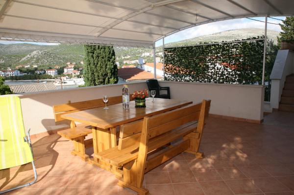 Apartments Villa Marin liegt in einem ruhigen Fischerdorf Seget Vranjica. Seget Vranjica befindet sich 5 km vom Flughafen entfernt, fünf Minuten von der Stadt Trogir und 30 Minuten von der Innenstadt von Split. Der Ort hat drei Restaurants, mehrere private Hotels und Cafés. Entfernung von Honig ist etwa 1000 m entlang der Strandpromenade, die zu der Hotelanlage gibt es eine große Möglichkeit der Unterhaltung von Tennis, Golf, Radfahren, etc. Die Wohnungen befinden sich 15 m vom Strand entfernt und in der Bucht gibt es ein paar Sandstrände. Alle Wohnungen verfügen über Balkone, die einen atemberaubenden Blick auf die Marina Bay bieten.