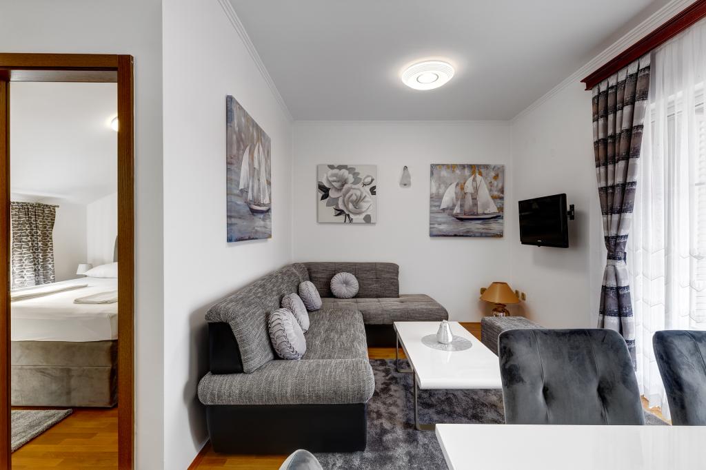 Die Račić Apartments befinden sich in Selce, Maršala Tita 135, weniger als 100 Meter vom Meer und Strand entfernt. Die Strände sind wunderschön mit Restaurants, Cafés sowie Liegestuhl- und Sonnenschirmverleih ausgestattet. Sie können zwischen Kiesel-, Beton- oder Sandstränden wählen. Die Wohnungen sind, wie das Haus, luxuriös möbliert und dekoriert, ordentlich und sauber. Der Hof des Hauses ist mit mediterranen Pflanzen geschmückt und hinter dem Haus befindet sich ein Grill, der den Gästen jederzeit zur Verfügung steht. Im Hof des Hauses stehen den Gästen gesicherte Parkplätze zur Verfügung. Jedes Apartment verfügt über eine Terrasse mit Blick auf das Meer und die Inseln, außerdem ist in jedem Apartment eine Klimaanlage eingebaut (die ausgeschaltet werden muss, wenn Sie das Apartment verlassen, um in die Stadt oder an den Strand zu gehen) und eine Markise (die geschlossen werden muss, wenn Sie sich nicht im Apartment aufhalten und bei schlechtem Wetter). Bitte beachten Sie die stets aktuelle Verfügbarkeit und Preisliste. Nicht im Preis inbegriffen ist eine einmalige Reinigungsgebühr in Höhe von 60,00 Euro, ebenso ist eine Kurtaxe in Höhe von 2,50 Euro pro Person nicht im Preis inbegriffen.