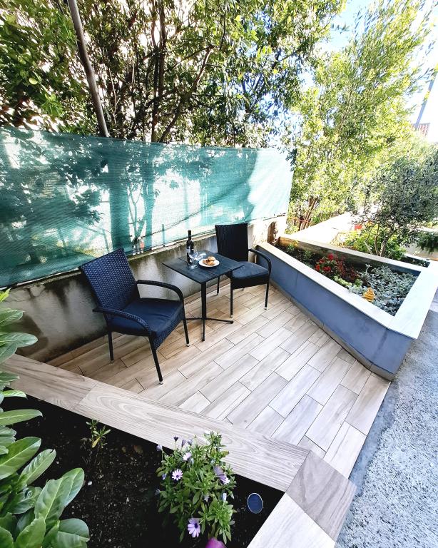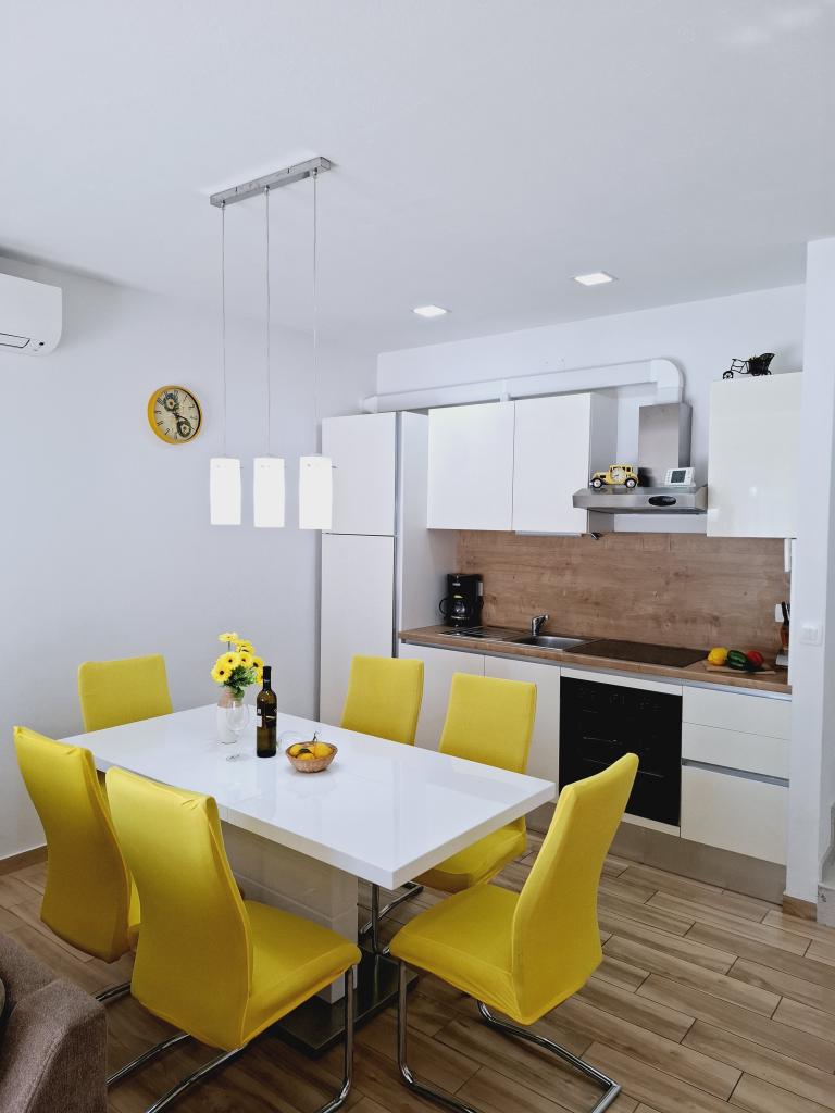 Apartment 1 befindet sich im Erdgeschoss eines Einfamilienhauses mit großer privater Terrasse und teilweisem Meerblick. Voll ausgestattet, Klimaanlage, Internet, Parkplatz. Es liegt ca. 300 m vom Meer, Strand und dem Stadtzentrum entfernt. Es besteht aus zwei Doppelzimmern (eines mit Doppelbett, eines mit zwei Einzelbetten), einem Wohnzimmer, einer ausgestatteten Küche mit Esszimmer (Geschirrspüler), einem Badezimmer (Waschmaschine) und einer separaten Toilette. Im Hof des Hauses steht ein Parkplatz für 1 Auto zur Verfügung. Das Studio-Apartment befindet sich im Erdgeschoss (Hochparterre) des Einfamilienhauses. Es verfügt über eine Küche, ein Doppelbett 160x200 cm, ein Badezimmer, Klimaanlage und eine kleine Terrasse vor dem Studio. Gemeinsame Nutzung des Grills. Apartment Lea befindet sich im 2. Stock. Es verfügt über 2 Schlafzimmer, eine ausgestattete Küche, ein Badezimmer (Waschmaschine), Klimaanlage, eine große Terrasse mit Meerblick. Im Hof des Hauses steht ein Parkplatz für 1 Auto zur Verfügung.