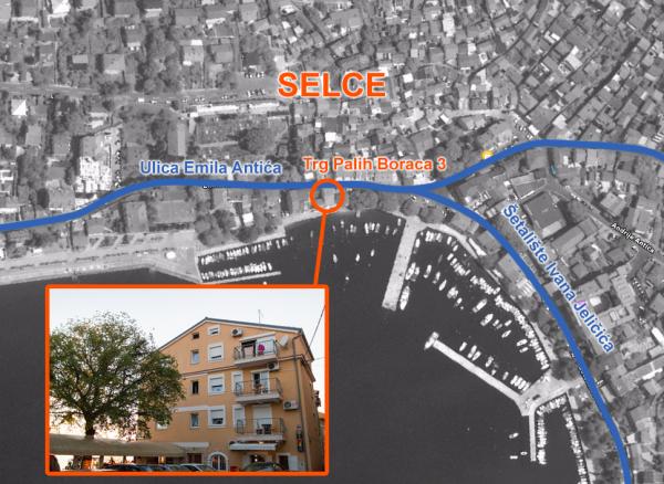Die Wohnungen befinden sich in einem dreistöckigen Gebäude, das sich im Zentrum von Selce direkt an der Küste befindet. Der Strand ist nur 2 Minuten (zu Fuß) von der Wohnung entfernt, und die Meeresküste nur 6 Meter vom Eingang in das Gebäude. Alles was man für einen entspannten Urlaub braucht, befindet sich in der unmittelbaren Umgebung der Anlage (Post, Bank, Reisebüro, Apotheke, Arzt, Markt, Supermarkt, etc.). Außerdem wird ein entschlüsseltes W-Lan Netz von der Stadt Selce den Gästen angeboten.
