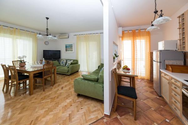 Wir hatten hier im Juli 2023 einen wunderschönen Urlaub. Die Besitzer sind sehr nett und zuvorkommend. Der Besitzer zeigte uns unsere Wohnung und erklärte uns alles. Der Eigentümer erlaubte uns, unser Auto bereits morgens vor der Wohnung zu parken. Ausgezeichnete Kommunikation mit den Eigentümern. Das ganze Haus ist wunderschön, eingerichtet und gepflegt, der Garten voller Blumen, überall sehr sauber. Wir hatten absolute Privatsphäre und Frieden. Die Wohnung ist ganz neu, modern und schön eingerichtet, sehr sauber und geräumig genug. Zwei Klimaanlagen, Waschmaschine und Geschirrspüler waren ausgezeichnet. Wir benutzten auch ein Bügeleisen und einen Erste-Hilfe-Kasten. Die Küche ist gut ausgestattet, es hat an nichts gefehlt. Fünf Leute fühlten sich dort großartig. Wir haben den Balkon mit Blick auf Selce genutzt, die Terrasse eignet sich hervorragend zum Trocknen nasser Sachen vom Strand. Die Wohnung verfügt sogar über einen zusätzlichen Raum für Schlauchboote, Schwimmausrüstung und Roller. Die Wohnung ist toll. Wir schätzen die wunderbare Nähe zum Zentrum, zum Geschäft, zum Obst- und Gemüsemarkt, alles innerhalb von 2 Minuten zu Fuß erreichbar. Der Strand von Poli Mora ist in 5 Minuten zu Fuß erreichbar. Die Putzfrau ist sehr nett zu uns und den Kindern, warmherzig. Wir haben bereits eine Reservierung für den Sommer 2024. Wir freuen uns darauf und empfehlen diese wunderbare Unterkunft weiter.