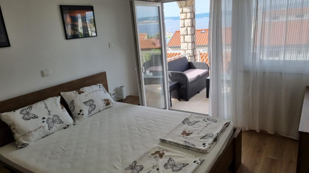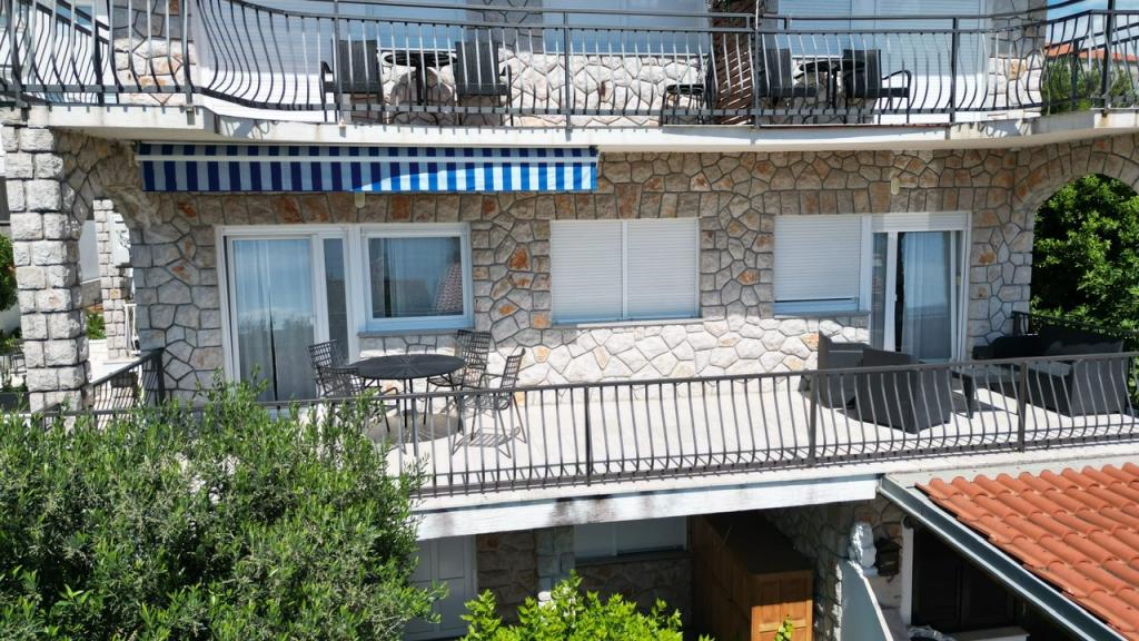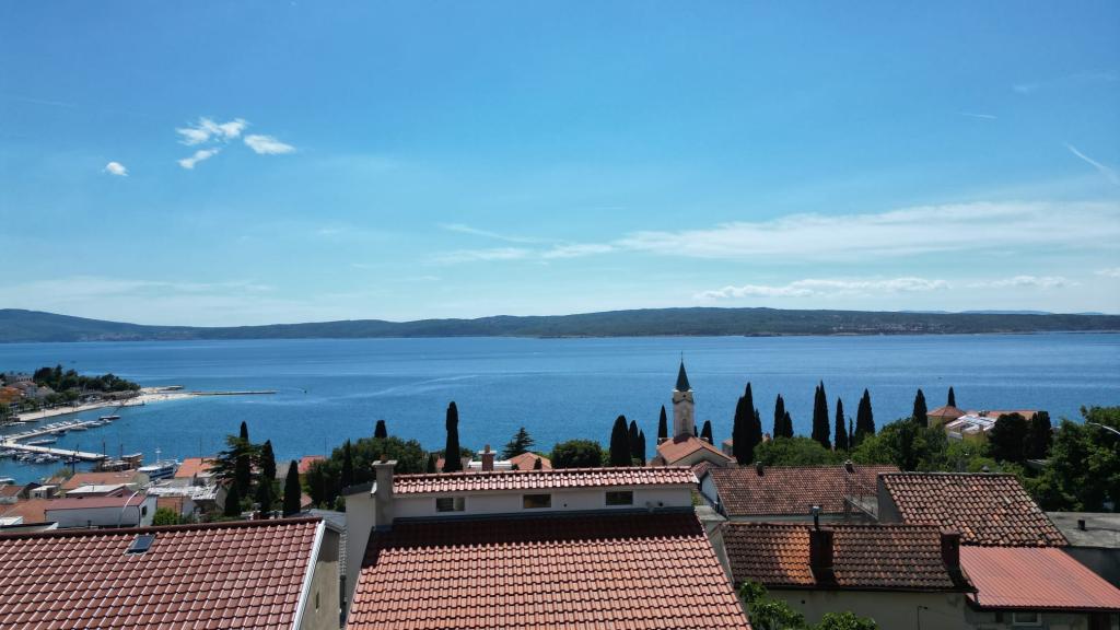 Ich vermiete eine Zweizimmerwohnung mit großer Terrasse und Meerblick. Die Wohnung liegt in einer ruhigen Straße, 200 Meter vom Meer, Strand und Zentrum von Selce entfernt.
