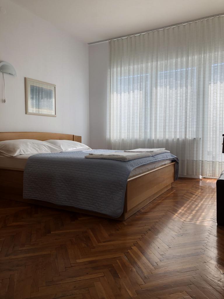 Modern eingerichtete Wohnung im ersten Stock eines Einfamilienhauses, separate Etage mit separatem Eingang und Parkplatz. 5 Minuten zu Fuß vom Zentrum und zehn vom Strand entfernt. Es besteht aus einer Eingangshalle, einem Badezimmer mit Wanne, einer voll ausgestatteten Küche mit Herd, Kühlschrank, Mikrowelle, komplettem Geschirr und Besteck. Schlafzimmer mit einem Doppelbett und einem Einbauschrank, kleinere Schlafzimmer mit einem Schlafsofa und einem Einbauschrank und ein Wohnzimmer mit einem Fernseher und einem Ecksofa. Vor dem Schlaf- und Wohnzimmer befindet sich eine gemütliche Terrasse mit Meerblick, die mit einer Markise überdacht und mit Essplatz und Liegestuhl ausgestattet ist. Der Raum ist klimatisiert und verfügt über WLAN.