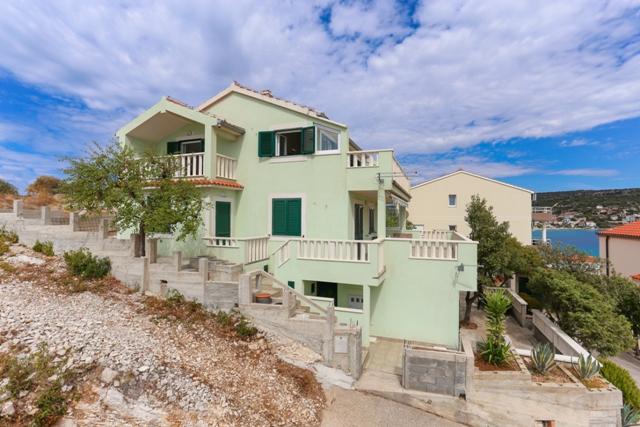 Das Haus liegt 50 m vom Meer entfernt in einem ruhigen Ort in der Nähe von Trogir, Sevid. In diesem Haus bieten wir 3 Wohnungen 4+2 an. Die Apartments verfügen über eine voll ausgestattete Küche, Sat-TV, Klimaanlage/Heizung und WLAN-Internet. Parkplätze und Anlegeplätze sind vorhanden. In der Nähe des Hauses haben Sie alles, was Sie brauchen: Strand, Restaurant, Supermarkt, Café. Apartment 1 (4+2) * * * Es handelt sich um ein Apartment im Erdgeschoss, ca. 50 m2, mit 2 Zimmern, kleinem WC, größerem WC, Küche, Wohnzimmer mit Sofa für 2 Personen, Balkon, Klimaanlage, WLAN, Parkplatz. Apartment 2 (4+2) * * * Apartment im ersten Stock, ca. 75 m2, 2 Zimmer, kleines WC, größeres WC, Küche, Wohnzimmer mit Sofa für 2, Balkon, Klimaanlage, WLAN, Sat-TV, Parkplatz. Apartment 3 (4+2) * * * Im zweiten Stock, hat es etwa 75 m2, 2 Zimmer, kleines Badezimmer, größeres Badezimmer, Küche, Wohnzimmer mit Sofa für 2, Balkon, Klimaanlage, WLAN, Sat-TV, Parkplatz.