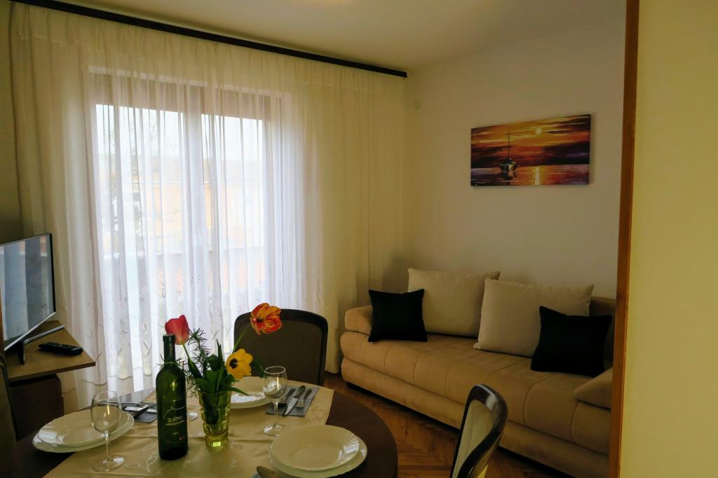 Das Haus liegt ca. 350m vom Meer entfernt, hat schöne Balkone und Terrassen, Grillplatz und einen großen Parkplatz. Das Haus hat zwei Wohnungen für zwei oder drei Personen mit Zusatzbetten in beiden Suiten. Das Haus ist in den Park und vom Meer ca. 350m. Auf dem Hof steht ein Grill zur Verfügung. Die Apartments verfügen über einen Fernseher und Satellit, Klimaanlage, Internet, alle Bettwäsche und voll ausgestattete Küchen und Bäder. Beide Wohnungen haben eine Terrasse und einen Parkplatz.