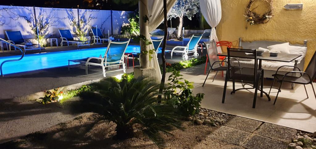 Villa Dube ist eine Familienvilla mit Swimmingpool in der schönen und ruhigen Bucht Slano, 28 km von Dubrovnik entfernt. Diese Familienresidenz ist der perfekte Ort für Reisende mit Kindern oder Paare für einen romantischen Urlaub. Es liegt direkt neben der ACI Marina Veljko Barbieri, nur 100 m vom Meer entfernt. Villa Dube bietet Unterkunft für 17 Personen. Im ersten Stock des Hauses befinden sich 2 Appartements (Sonnig und Gemütlich) für jeweils 4 Personen (Wohnzimmer mit Küche, Schlafcouch für 2 Personen und eine Treppe zur Terrasse. Schlafzimmer mit einem Doppelbett, zu dem ggf Es ist möglich, ein Zustell- oder Kinderbett hinzuzufügen., und ein Badezimmer. Auf der gleichen Etage bieten wir auch ein unabhängiges Doppelzimmer mit einem Doppelbett, einem Badezimmer und einer Terrasse mit Meerblick. Im Erdgeschoss von Das Haus ist ein Gartenstudio für 2 Personen mit Terrasse und Zugang zum Pool.Hinter dem Haus neben dem Badezimmer befindet sich der Familiengartenbungalow für 4 Personen.Alle unsere Zimmer sind mit Klimaanlagen und Wi-Fi-Netzwerk ausgestattet.Bettwäsche , Handtücher, Toilettenpapier, Seife und Geschirr sind in der Wohnung inklusive.Im Garten des Hauses befindet sich ein Kinderspielplatz