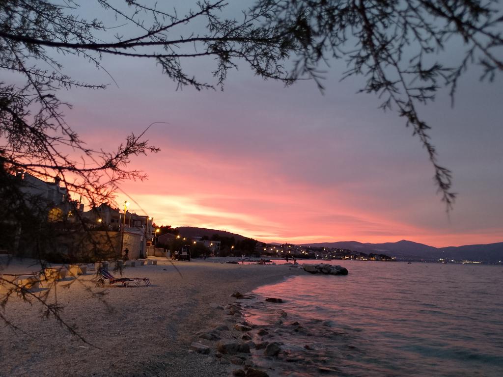 Die Apartments liegen sehr nah am Strand und bieten einen wunderschönen Blick auf das Meer. Sehr sauber, mit allen notwendigen Dingen ausgestattet. Die Besitzerin ist sehr nett, hilfsbereit und kümmert sich um ihre Gäste. Ein gepflegter Strand mit feinen Kieselsteinen und einer Außendusche. Platzieren Sie in einer ruhigen Gegend. Es liegt jedoch in der Nähe von Bars, Restaurants und einem Wasserspielplatz. In der Nähe von Ausflügen nach Trogir und Split. Sie können mit öffentlichen Verkehrsmitteln und der Fähre dorthin gelangen.