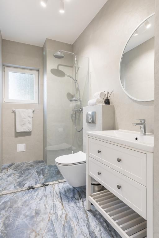 Wir haben im August 3 Apartments in diesem schönen Haus mit Garten gebucht. Marina ist eine sehr nette und verständnisvolle Gastgeberin und hat unsere Bitte, wenn möglich, früher anzureisen, gerne angenommen. Eines der Appartements haben die Gäste vorzeitig verlassen, somit wurde es sofort gereinigt und wir konnten es morgens beziehen, worüber wir uns besonders wegen der Kinder sehr gefreut haben! Marina ist immer erreichbar und hilfsbereit! Er stellte uns Parkplätze für 4 Autos im Haus zur Verfügung. Es war eine wunderbare Woche Urlaub mit meiner großen Familie mit Freunden und 4 kleinen Kindern. Alle drei Appartements mit gemütlich eingerichteter Familienterrasse waren gemütlich und sauber! Abends aßen wir meistens zusammen auf der riesigen Terrasse der oben stehenden Wohnung, wo wir alle Platz fanden, während wir den wunderbaren Blick aufs Meer genossen. Eines Abends im Garten, im Schatten einer wunderschönen großen Palme, konnten wir in einer sehr gemütlichen mediterranen Umgebung grillen, die mit einem riesigen Tisch (an dem wir alle sitzen konnten) und einem Waschbecken ausgestattet war, also war es einfach Aufräumen. Im Garten gab es eine Schaukel, einen kleinen Pullover, einen Roller und andere Spielsachen, damit die Kinder in der Zwischenzeit spielen konnten. Der Strand, der 2 Gehminuten vom Haus entfernt ist, ist wunderschön, sauber und nicht überfüllt! Ein kleiner Hafen ist nur einen kurzen Spaziergang von der Wohnung entfernt, von wo aus Sie mit einem kleinen Boot in die Altstadt von Trogir fahren können. Alle haben ihren Urlaub im Marina Apartment sehr genossen, das einzige Problem war, dass eine Woche zu kurz war, wir wären gerne länger geblieben! Durch Zufall wurde dort ein Schlafspielzeug liegen gelassen, was für ein kleines Kind wichtig ist, aber Marina hat es angeboten und uns per Post zugeschickt. Wir empfehlen die Wohnung jedem von ganzem Herzen! Vielen Dank Marina! <3