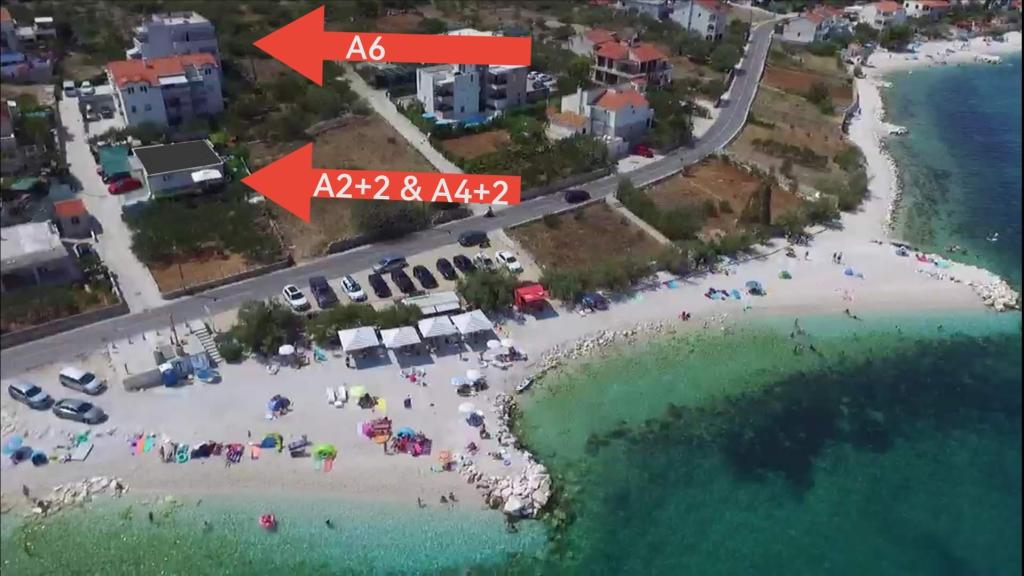 Hallo! Ich freue mich, Ihnen die Apartments in Slatine auf der Insel Čiovo vorstellen zu dürfen! Die Apartments befinden sich in Slatine, nur 10 m vom Meer entfernt (Strand siehe Bild), in ruhiger Lage – ideal für einen Familienurlaub. Apartment A6 liegt 30 Meter höher als die beiden anderen Apartments und ist somit 40 m vom Strand entfernt. Die Apartments sind mit Klimaanlage, Internet, Fernseher und Satellitenempfang ausgestattet. Parkplätze stehen für alle Gäste zur Verfügung. Wir freuen uns auf Ihren Besuch in Slatine!
