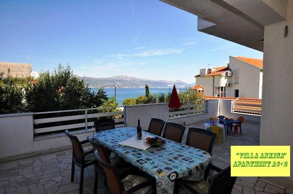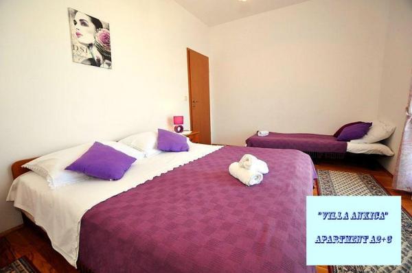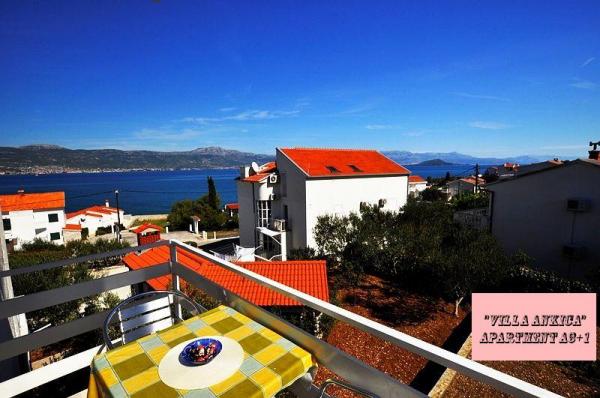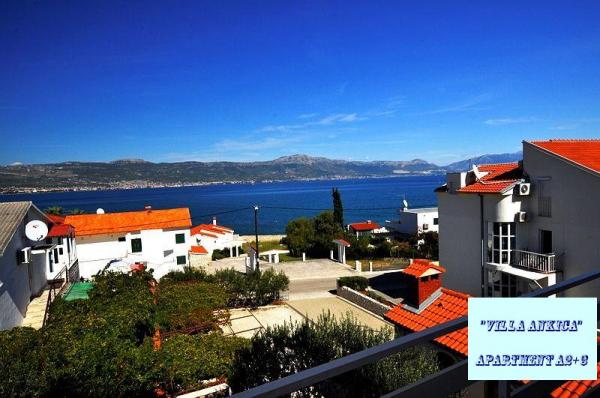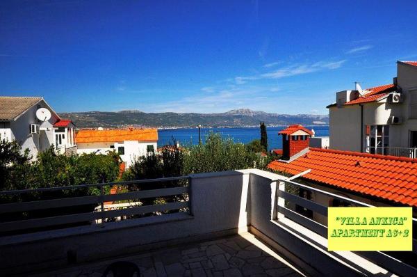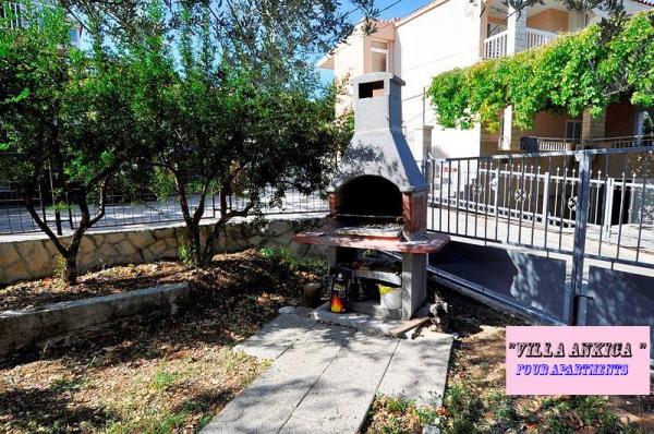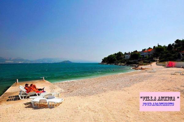 Die Villa Ankica befindet sich in Slatine auf der Insel Ciovo, 4,5 km von Trogir entfernt, einer der schönsten Städte der von der UNESCO geschützten Adriaküste. Die Villa ist ca. 1 Autostunde vom Krka-Nationalpark entfernt. Die Villa befindet sich auf einer Fläche von 1100 Quadratmetern. Die Kapazität der Villa beträgt bis zu 20 Personen. Im Erdgeschoss befindet sich die Wohnung A6. Im ersten Stock sind Wohnungen A4j und App. A3 2. Im zweiten Stock befindet sich die App. A4. In einer ruhigen Umgebung können Sie Ihren Urlaub in einem unserer vier modernen Apartments mit herrlichem Meerblick genießen. Jedes Apartment ist klimatisiert und verfügt über Sat-TV und eine große Terrasse. Während Ihres Urlaubs ist Ihr Auto, Fahrrad oder Boot auf unserem großen, umzäunten Parkplatz sicher. Auf dem Grill im schönen Garten können Sie dalmatinische Spezialitäten zubereiten und unsere lokalen Weine, Brandys, Liköre und Öko-Olivenöl genießen.