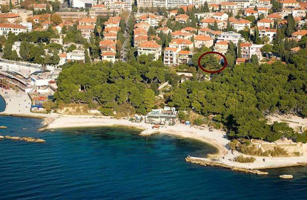 Die Wohnung besteht aus zwei Schlafzimmer (groß und klein) Küche, Bad, Diele, großes Wohnzimmer mit Zugang zu einer großen Terrasse mit Blick auf den Garten und das Meer, in der Nähe des berühmten Strand Bačvice, es gibt auch Restaurants, Cafés, mehrere Strand, Wanderwege, Spielplätze für Kinder, Tennisplätze, Open-Air-Kino (gegenüber dem Garten), das Stadtzentrum mit dem Palast des Diokletian. In der Nähe von Bahnhof und Busbahnhof und dem Fährhafen. Auch innerhalb 200m sind Einkaufszentrum, Banken, Geldautomaten, Apotheken, Krankenhäuser.