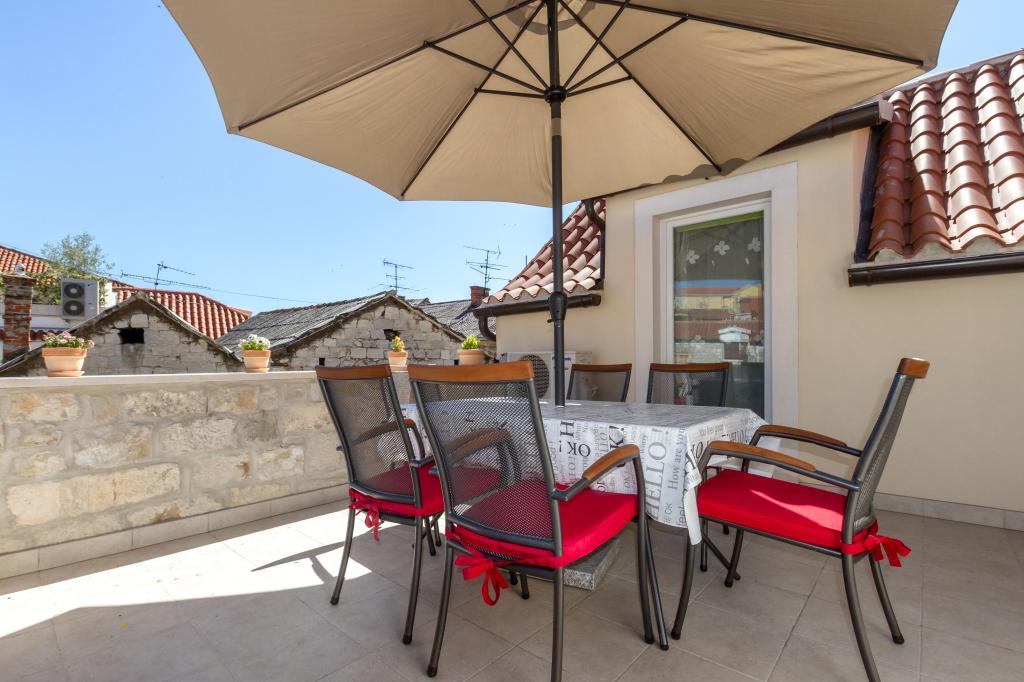 Wohnung 74 m² im Zentrum von Split, in unmittelbarer Nähe aller historischen Sehenswürdigkeiten und gesellschaftlichen Veranstaltungen, Museen, Galerien, Stadtstrände, Kinderspielplätze, Supermärkte, Märkte, Restaurants, Cafés, Reisebüros, Souvenirläden...usw. All dies befindet sich in einem Umkreis von 5 bis 300 Metern um die Wohnung. Es befindet sich im 2. (letzten) Stock eines alten renovierten Hauses mit großer sonniger Dachterrasse geschützt vor den Blicken der Nachbarn, 2 Schlafzimmern – eines für zwei Personen (Doppelbett 2x1,80m) und das andere Zimmer für eine Person (Bett 2x0,80m) und Kleiderschränke. Die Wohnung verfügt außerdem über eine gut ausgestattete Küche mit allem, was Sie zum Zubereiten verschiedener Gerichte benötigen. Außerdem gibt es ein Wohnzimmer mit Esszimmer und ein geräumiges Badezimmer. Das Haus, in dem sich die Wohnung befindet, wurde vor mehr als 500 Jahren erbaut. In der Antike war es die Kirche St. Peter, der im 18. Jahrhundert entsakralisiert wurde. Deshalb heißt diese Wohnung Apartment Sv. Peter der Alte.