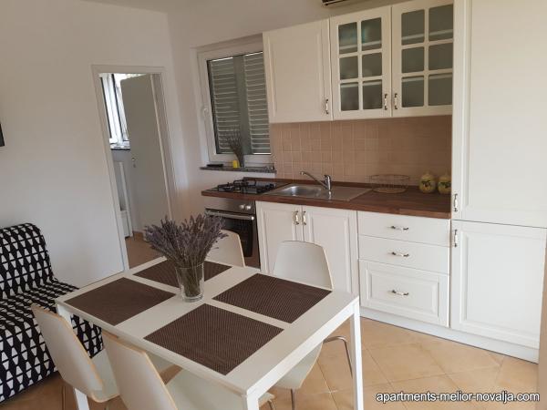 Das Apartment Melior ist sehr geräumig und hübsch eingerichtet. Es befindet sich im Erdgeschoss des Hauses und verfügt über einen separaten Eingang, eine geräumige Terrasse mit Grill sowie einen Sitz- und Sonnenbereich auf den Sonnenliegen. Ausgestattet mit allem, was Sie brauchen und alles in der Nähe der Apartments. Großartige Lage, nur 70 m vom schönen Sandstrand Uljak, 30 m von der örtlichen Strandbar, 600 m von den örtlichen Geschäften und 700 m vom schönen Restaurant entlang der Taverne Porat entfernt. In der Nähe der Wohnung gibt es eine schöne Promenade entlang der Küste entlang des gesamten Stare Novalja. Die Wohnung ist in erster Linie für einen ruhigen Familienurlaub gedacht (Familie mit Kindern) und nicht für Personen, die am beliebten Strand Zrće spielen möchten.