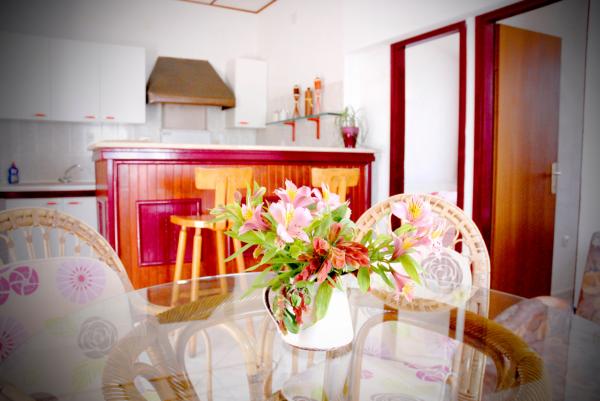 Dieses chic Haus ist 60 m2 groβ und bietet unterkunft für max 5 Personen. Es hat 2 SCHLAFZIMMER (1 Doppelbett und zwei Einzelbetten mit Bettwäsche), VOLL AUSGESTATTETE KÜCHE MIT BAR (Geschirr zum Servieren von Speisen und Getränken, Besteck, Geschirr, Geschirrspüler, Backofen, Kühlschrank, Gefrierschrank, Mikrowelle, Wasserkocher, Kaffeemaschine, Toaster), 2 BADEZIMMER (Waschmaschine, Dusche, Handtücher, Haartrockner), WOHNZIMMER (Schlafsofa, Tisch und Stühle, TV, kostenlosen WLAN-Internetzugang, Klimaanlage), TERRASSE MIT BLICK AUFS MEER (Tisch und Stühle), SCHÖNEN GARTEN VOLLER BLUMEN (3 Liegestühle, Schaukel und Grill), KOSTENLOSER PARKPLATZ. Haus ist weniger als 3 Minuten zu Fuß von den Felsen Strand und 5 Gehminuten vom Sandstrand entfernt, weniger als 1 Minute zu Fuß von der schönen Park mit einem Spielfeld, 2 min zu Fuß von der Gegend mit vielen traditionellen Restaurants und Bars, die frischen Fisch, Bio-Gemüse und Früchte, gute Weine, hausgemachtes Olivenöl und Gebäck typisch für dieses Klima bieten, 5 min zu Fuß vom Zentrum Stobreč.