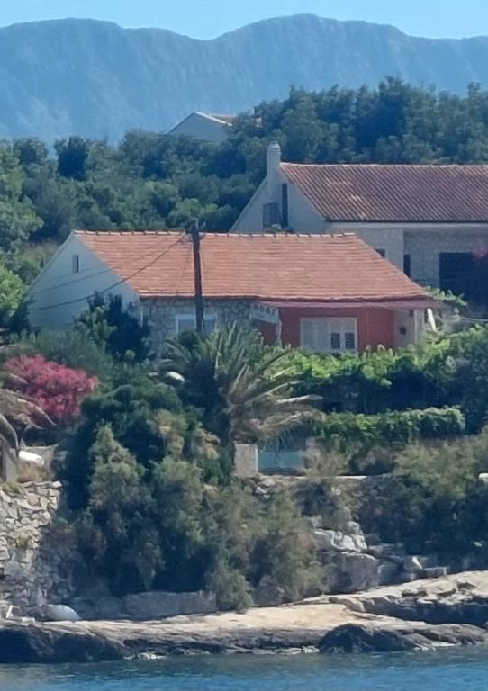 Familienhaus in der Kategorie Anwesen am Strand, 20 m vom Meer entfernt, Sike. Es gibt mehrere Wohneinheiten, so dass während Ihres Aufenthalts wahrscheinlich andere Gäste im Haus wohnen Küche (zwei große Kühlschränke, Mikrowelle, Wasserkocher), Wohnzimmer mit TV, zwei große Terrassen mit Blick auf Pelješac, Korčula Auch Blick auf den Garten, Hof.