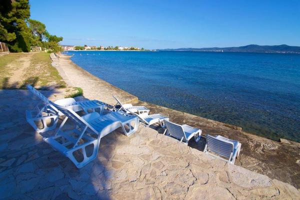 Die erste Reihe zum Meer, moderne neu eingerichtete Apartments, vom großen Hof ist ein direkter Ausgang zum Strand. Der Hof ist groß mit viel Grün, Sonnenschirmen, Liegestühlen, Schaukeln, Rutsche, Kindertrampolin, Tisch, Stühlen und Grill. Der Strand vor dem Haus ist wunderschön, Sand ist besonders für Kinder geeignet, da es anfangs viele flache Stellen gibt. Der Strand ist windgeschützt im Vergleich zu anderen Stränden in Sukosan und innerhalb des Hauptstrandes Djeci Raj.