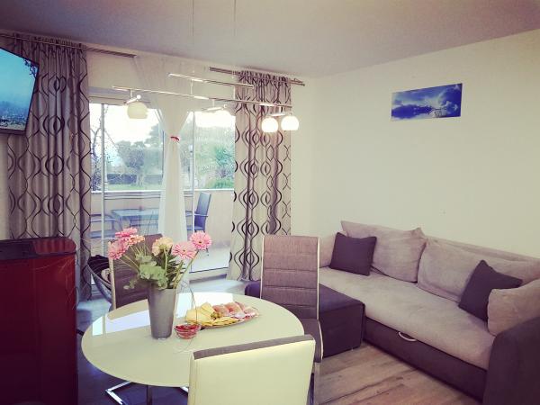 Die Apartments sind neu, die Küchen sind mit allen Utensilien, Koch- und Besteckteilen, sauberer Bettwäsche und Handtüchern, Moskitonetzen und Wasserkochern ausgestattet. Alle Wohnungen haben Internet, TV / Satellit. Steuern und Parkgebühren sind im Preis inbegriffen. Die Benutzung von Klimaanlagen kostet 7 Euro pro Tag, Sie zahlen also nicht, wenn Sie sie nicht benutzen. Für einen Hund oder einen großen Hund berechnen wir zusätzlich 7 Euro pro Tag für die Reinigung der Wohnung.