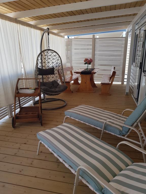 Übernachten Sie in freistehenden Häusern auf einem kleinen Familiencampingplatz direkt am Strand.