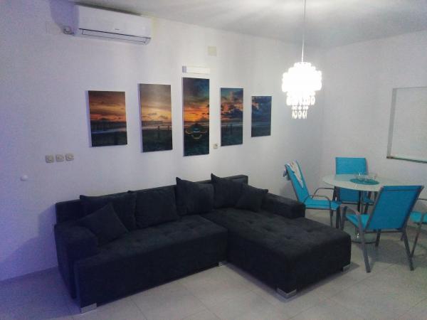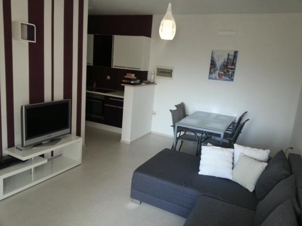 Mietwohnungen sind luxuriös und neu eingerichtet und klimatisiert und mit Wi-Fi Internet-Anschluss ausgestattet. Größe der einzelnen Wohnung ist 55 m2 mit terasaom von 30m2. Die Wohnung besteht aus einem Schlafzimmer, Wohnzimmer, Bad und Küche, und ist ideal für 4 Personen, Paare mit oder ohne Kinder. Überdachte Parkplätze für Fahrzeuge (Garage) können drei Fahrzeuge. Es liegt in der Nähe mehrere schöne Strände, Natursport und Radwege, und die Stadt, aber in einer ruhigen Gegend und den Hafen. Die Wohnung befindet sich in der Nähe der Marina, die ein beliebtes Ziel für Segler befindet. In der Nähe gibt es mehrere versteckte Buchten mit schönen Stränden, wo man Ruhe die Schönheit des kristallklaren Meer zu genießen.