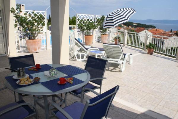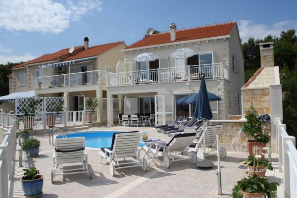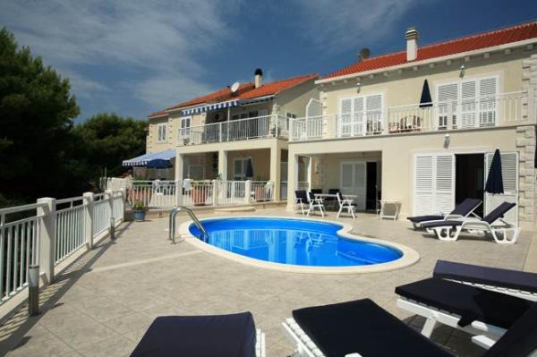 Mirula Komplex besteht aus einzelnen Villen 8 +4 und drei Wohnungen, eine 2 +2 und 4 +2 ein. können insgesamt 16 Personen 10 oder Sie können einige Wohneinheiten (Häuser und Wohnungen) zu buchen. Die Villa verfügt über ein Schwimmbad, das exklusiv für die Gäste der Villa ausgelegt ist, aber wenn man Villen und Apartments buchen zusammen, Haus können die Gäste auch das Schwimmbad benutzen. Auf jeder Etage der Villa gibt es eine voll ausgestattete Küche (Herd, Backofen, Geschirrspüler, Kühlschrank, Mikrowelle, Mixer, Toaster, Kaffeemaschine, Kaffee Espresso-und Cappuccino-Maker) und Anlagen für die bar. Auf der Terrasse der Villa ist ein Kamin mit Zubehör und Elektrogrill. Vier Schlafzimmer mit fünf Bädern. Die Apartments sind komplett mit allen notwendigen Geräten .. Jedes Zimmer hat ein eigenes Bad sowie WLAN-Internetzugang in allen unseren Unterkünften ausgestattet. Die Spezifität der komplexen Mirula ist immer noch Teil einer kleinen Fischer-und Touristenstadt und mit Blick auf das Meer und nahe zum Strand.