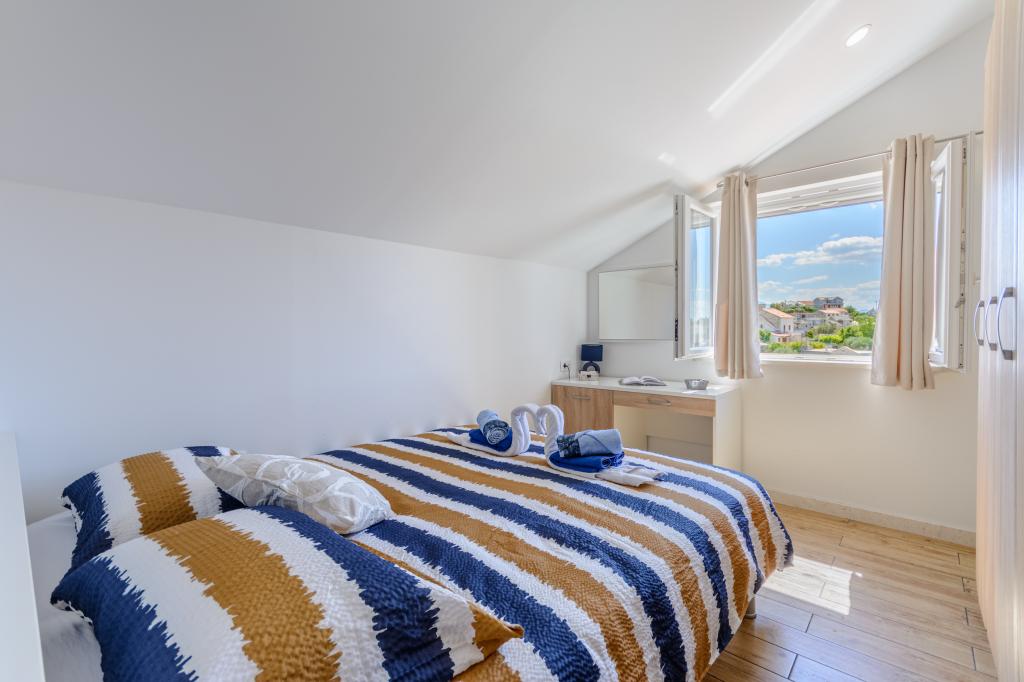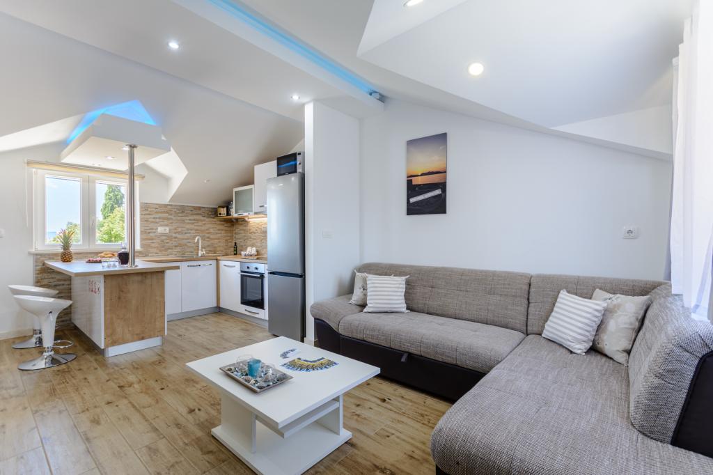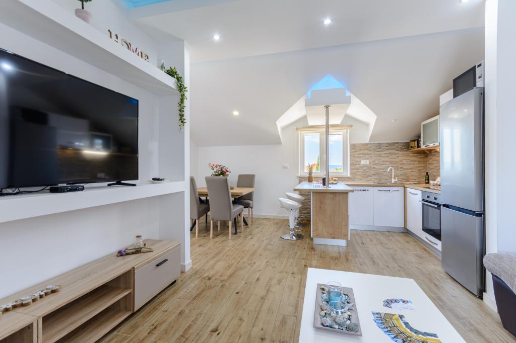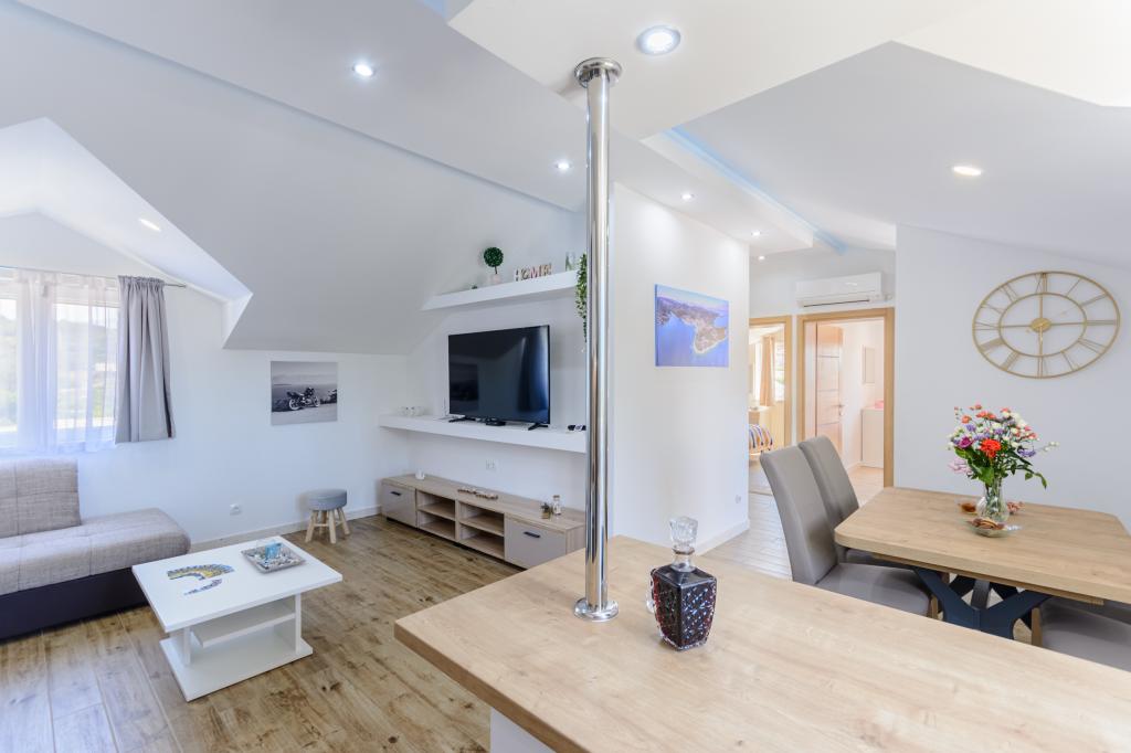Willkommen in unserem charmanten Apartment im Herzen von Sumartin auf der wunderschönen Insel Brač. Nur 100 Meter vom Meer entfernt bietet Ihnen das Apartment die perfekte Kombination aus Komfort und Bequemlichkeit. Es bietet Platz für bis zu 5 Gäste (4+1) und ist ideal für Familien, Paare oder Freunde, die sich entspannen und den Charme der Insel genießen möchten. Verbringen Sie einen ruhigen Aufenthalt in fußläufiger Entfernung zu Stränden, Restaurants und dem Hafen. Ein sicherer Parkplatz steht Ihnen ebenfalls zur Verfügung. Wir freuen uns auf Ihre Ankunft!