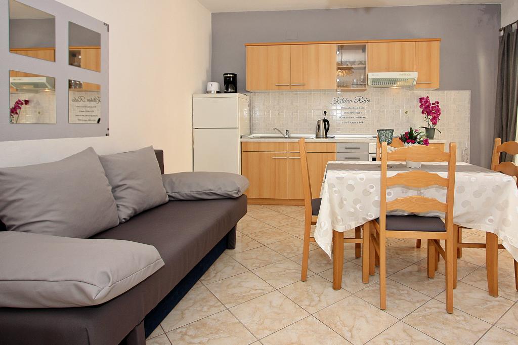 Extrem saubere Wohnung und schön eingerichtet. Es hat viel Platz und eine große Terrasse, die den ganzen Tag im Schatten liegt. Das Bettzeug roch sehr gut, sie ließen uns Seife, Toilettenpapier, zwei Geschirrspüler, Handgeschirrspülmittel, Mehl, Tee und vieles mehr. Der einzige Nachteil war der kombinierte Ofen mit zwei Kochfeldern und zwei Gasen, die nicht funktionierten, da überhaupt kein Gas vorhanden war. Nur zwei Kochfelder und ein Ofen funktionierten. Man kann aber auch so kochen. Der Strand ist in der Nähe, nur 5 Minuten zu Fuß. Der Laden ist auch ganz in der Nähe, auf dem Weg zum Strand und die Stadt ist gleich nebenan, ca. 10 Minuten entfernt. Kurz gesagt, alles ist in der Nähe (einschließlich Banken, Geldautomaten, Restaurants und Bars). Die Stadt Supetar ist sehr schön, besonders nachts. Es lohnt sich, am Wasser entlang zu gehen, wo sie eine Vielzahl von Attraktionen verkaufen. Entlang des Strandes gibt es viel Schatten unter den Bäumen, also ist es überhaupt großartig. Sie haben auch eine riesige Rutsche und ein aufblasbares Wasserspielzeug für die Kinder. Wir gingen im Restaurant essen oder Fast Food Jure und wir waren sehr zufrieden. Sehr gutes Essen und sehr freundliches Personal. Sogar die Wohnungseigentümer und das Mädchen, das hilft, sind alle sehr freundlich.