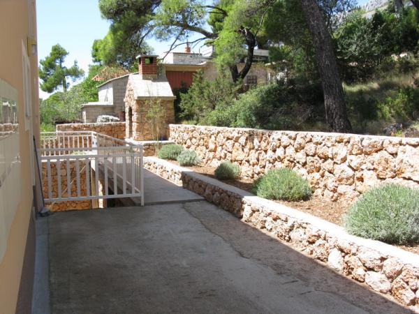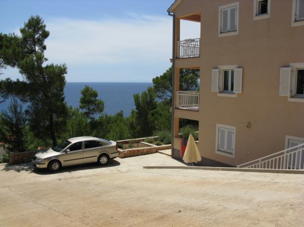 Die Wohnungen befinden sich in einem Familienhaus in einem ruhigen Dorf an der Südseite der Insel Sveta Nedilja entfernt. Rund um das Haus gibt es Kiefern, und vor dem Haus ist ein Garten mit mediterranen Pflanzen (Lavendel, Zitrone, Salbei, Rosmarin, Bougainvillea, Feigen ...). Das Haus hat drei Etagen. Mit dem Haus ist ein Parkplatz für jede Wohnung. Jede Wohnung hat einen Blick aufs Meer. Jede Wohnung verfügt über ein separates Schlafzimmer, Bad, Wohnzimmer mit Küche und Terrasse mit Meerblick.