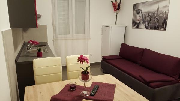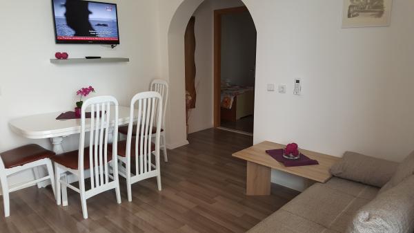 Ausgestatteten Apartments im Zentrum von St. Petars. Die Anlage befindet sich 50 m vom Meer und 100 Meter vom Strand, 3 Minuten zu Fuß. Innerhalb von 200 Metern gibt es Restaurants, Cafés, Geschäfte, Bäckereien, Arzt und Apotheke. Wir befinden uns in einer Fußgängerzone, und es ist nicht möglich, das Auto vor den Apartments parken bereits reservierten Parkplatz 200 m entfernt von den Wohnungen gesichert, 5 Minuten zu Fuß. Der Strand ist für Kinder (Sand, Kies, Betonteil) angepasst und hat einen natürlichen Schatten der Pinien.