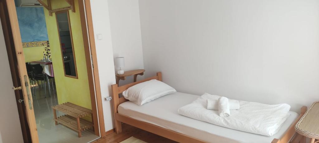 Komplett möblierte und ausgestattete 60m² + Terrassenwohnungen in ruhiger Lage. Die Anlage liegt 15 Gehminuten von Sand- und Kiesstränden entfernt, die für Kinder geeignet sind. Ebenfalls 15 Gehminuten entfernt befindet sich das Zentrum mit einem Markt, Restaurants, Konditoreien, Geschäften (Konzum, Plodine, Tommy-Markt...), Klinik, Apotheke, Post, Kinderspielplätzen usw. Im Hof gibt es Nebengeschäfte Einrichtungen, Außengrill, Spüle mit Schränken, in denen alles Notwendige zum Servieren von Speisen enthalten ist, Tisch und Stühle im Schatten. Auch das Aufladen von Elektroautos ist möglich. Zu jeder Wohnung gehört ein überdachter Parkplatz. Für andere Fahrzeuge ist hingegen etwa fünfzig Meter von der Wohnung entfernt Platz (kostenlos).