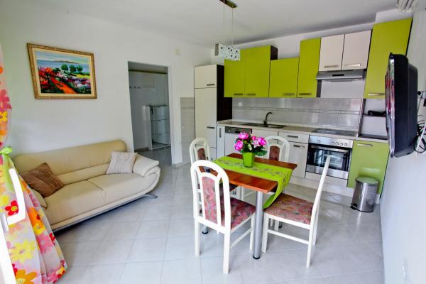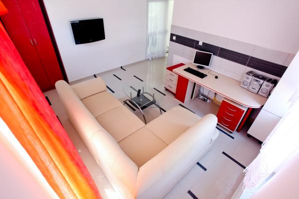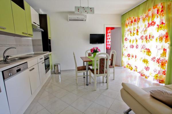 Die neue Anlage Villa Palma befindet sich nur 120 m vom Zentrum entfernt. Voll ausgestattete und moderne Apartments befinden sich in einer ruhigen Gegend von St. Philip James entfernt. Sie sind am Meer, vor dem nur Lager, und die Entfernung zum Strand nur ca. 200 m entfernt. Der erste Laden befindet sich nur 100 Meter entfernt. Der Strand ist sauber und schön, und hat eine grüne Promenade, der Es gibt Duschen, Umkleideräume und ist für kleine Kinder geeignet. weil es einen Spielplatz mit Schaukeln, Sand, Wippen, und für ältere Kinder und Erwachsene gibt es hat, ist ein Boden-Volleyball und Cafés und Fast-Food zum Spielen. In der Nähe der Mitte ist ein Basketballplatz und ein paar Geschäfte und ein Supermarkt. An der Küste gibt es mehrere Tavernen, in denen die Gäste lokale Spezialitäten und Fisch, und es ist auch eine ausgezeichnete Pizzeria mit anderen Angeboten zu genießen. Das Gebäude hat nur 4 Wohnungen, davon 2 auf 113 m2 und eignen sich für zwei Familien und 8 Personen, während eine Wohnung für 4 Personen und eine für 5 Personen. Willkommen und einen angenehmen Aufenthalt in diesem schönen Ambiente
