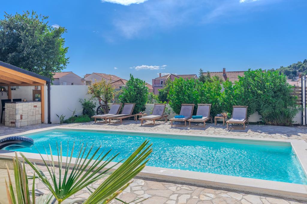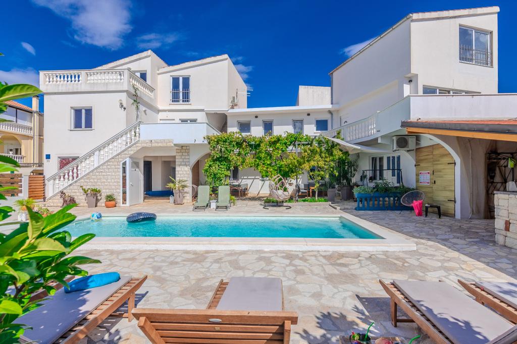 Die Ferienwohnungen befinden sich im kleinen Fischerdorf Tribunj. Der Markt ist nur wenige Gehminuten entfernt, sodass Sie täglich frischen Fisch, Obst und Gemüse der Saison einkaufen können. Ein großer Garten mit Swimmingpool und weiteren Annehmlichkeiten sorgt für einen angenehmen Urlaub. Bootsausflüge in den Nationalpark Kornati werden von Tribunj aus organisiert.