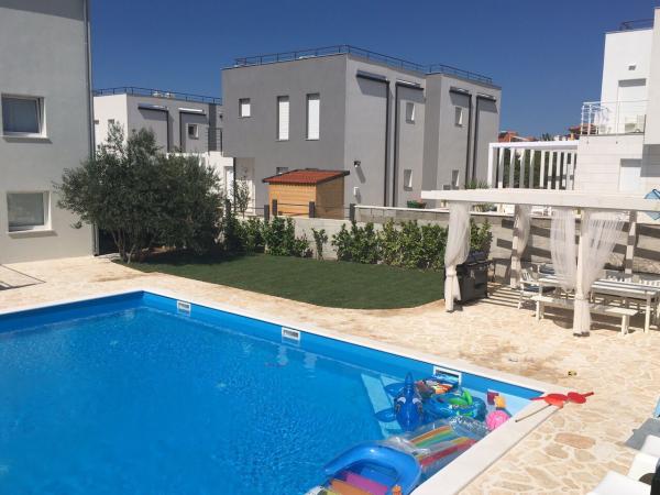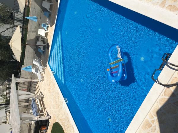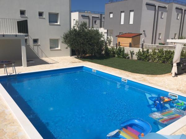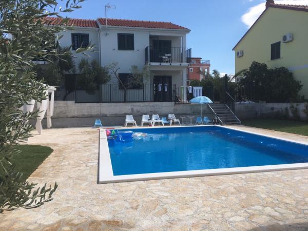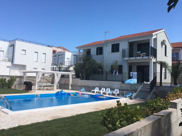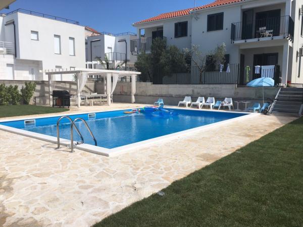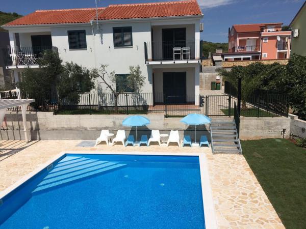 Voll ausgestattete und moderne neue Wohnungen in einem ruhigen Teil von Tribunj, in der Nähe der Stadt, ideal für einen unbeschwerten Urlaub. Die Apartments sind ideal für zwei, sondern kann bequem bis zu vier Personen Platz bieten. Die Apartments sind komplett ausgestattet mit allem, was Sie für einen unbeschwerten Urlaub ausgestattet - von der Küche, Bad, Waschmaschine, Geschirrspüler, Bettwäsche, Handtücher und im Freien Gemeinschaftsraum mit einem Pool, Liegestühle, Grill und Gartenküche. Durch die Aufteilung der Einheiten (zwei getrennte Einheiten, die jeweils mit zwei Wohnungen in jedem), geeignet für Familien oder der Gesellschaft von 8 Mitgliedern, die in der gleichen Einheit mit dem gleichen Eingang in zwei separaten Wohnungen bleiben können. Es ist möglich, das ganze Haus zu mieten, die 16 Personen aufnehmen können. Die Apartments befinden sich nur wenige Gehminuten entfernt vom Zentrum Garade, in dem der Markt, Geschäfte, Apotheke, Gesundheitszentrum, Cafés, Restaurants, ein Park und dem Jachthafen und 7 Minuten vom schönen Strand von Tribunj entfernt. Gebiet Tribunja ist fantastisch wegen seiner Lage, da es liegt in der Nähe der Stadt, Sibenik,