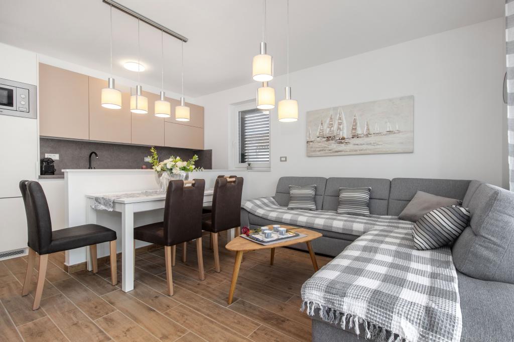 Die Three Olives-Anlage ist ein Neubau und öffnet ab Sommer 2024 erstmals ihre Türen für Gäste. Im Innenhof des Gebäudes stehen drei alte Olivenbäume, ein für die kroatische Küste und die Inseln so typisches Holz, aus dessen Früchten das Öl bester Qualität gewonnen wird, das oft als „flüssiges Gold“ bezeichnet wird. Der Name Three Olives deutet auf eine Umgebung des Friedens, der Ruhe und des Überflusses hin. Die Apartments der Anlage sind einzigartig, modern und voll funktionell ausgestattet, sodass Sie sich wie zu Hause fühlen können! Die Anlage ist hervorragend positioniert; Es liegt 150 m vom Meer und 200 m vom Stadtzentrum entfernt. In der unmittelbaren Umgebung gibt es keine Hauptstraßen oder Geschäftseinrichtungen, so dass den Gästen tagsüber und nachts Ruhe garantiert ist. Kurz gesagt, alles ist für Ihren kompletten Urlaub bereit.