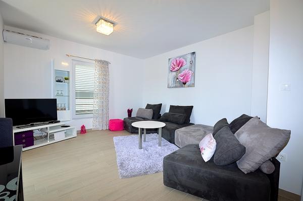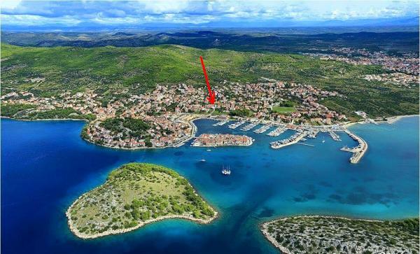 Tribunj- Wohnung mit zwei Schlafzimmern Bett, WC, Bad WC, Küche und Wohnzimmer, Terrasse, Parkplatz, Klimaanlage, 300 Meter vom Strand entfernt, 200 m vom Zentrum, 100 m zu den Geschäften und Restaurants .