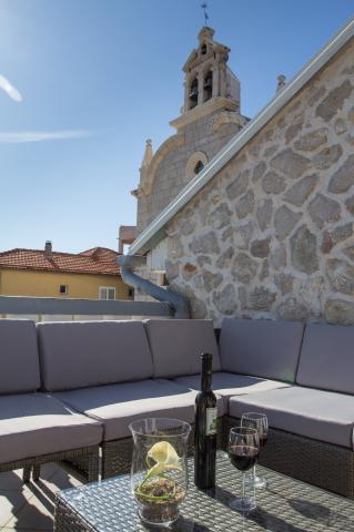 Schönes Steinhaus, in dem die Wohnung, mit viel Liebe eingerichtet und mit viel Liebe zum Detail eingerichtet, so dass es Ihnen während Ihres Aufenthaltes fühlen sich entspannt und komfortabel macht. Das Haus liegt im Herzen des kleinen Fischerdorf Tribunj, in der ersten Reihe. Nur ein paar Schritte entfernt vom Strand, Restaurants, Cafés, Geschäfte und alles andere, was Sie Ihren Urlaub einfacher und umfassender zu machen. Die Wohnung hat eine Fläche von 70 m² und ist auf 6 Personen Platz entworfen. Das Erdgeschoss verfügt über ein geräumiges Wohnzimmer, die aus der Küche Bartisch getrennt ist, und Bad, und im Obergeschoss sind zwei Schlafzimmer. Alle Zimmer bieten einen atemberaubenden Blick auf das Meer, sowie zwei große Terrassen, die diese Wohnung besonders machen.