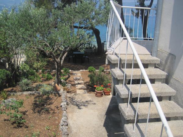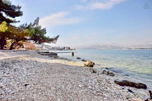 Die Wohnung befindet sich in der Nähe zum Meer, Ausfahrt aus dem Garten befindet sich am Strand. Restaurant, Geschäfte, Bars, ein Fahrrad mieten, einen Motorroller mieten sind im Umkreis von 100 Metern. Die Parkplätze am Gebäude und eingezäunt. Größere Ort ist die Stadt Trogir 4 km entfernt, mit dem Bus verbunden. Die Bushaltestelle ist 100 m.