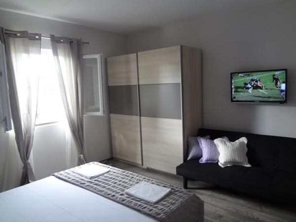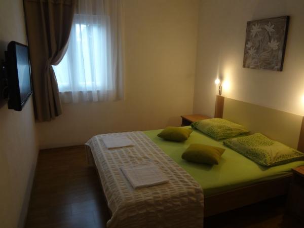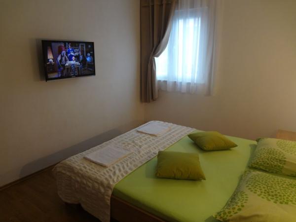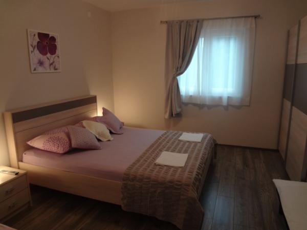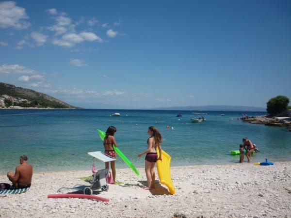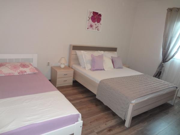 Wir bieten zwei Suiten (drei Sterne). Beide Wohnungen sind im ersten Stock. Ferienwohnung A3 1 hat zwei Schlafzimmer und ein Schlafsofa im Wohnzimmer, Wohnung A2 +2 hat ein großes Zimmer mit einem Doppelbett, einem Einzelbett und einem Schlafsofa. Beide Wohnungen verfügen über Doppelbetten, gut ausgestattete Küche, großer Kühlschrank, Bad, Parkplatz, Klimaanlage, Außendusche, Grill und Terrasse. Okrug Gornji auf Ciovo, die mit dem Festland verbunden ist, entfernt. Also das ist im Grunde ist es Insel und Festland in der gleichen Zeit. Sie können ohne jede Zahlung mit dem Auto durch die Brücke, die 24 Stunden am Tag geöffnet ist, zu reisen, auf dem Festland oder in einer anderen Stadt. Von Okrug Gornji kann man nach Trogir mit dem Auto, Bus und Schiff zu gehen. Trogir ist 2-4 km von Okrug Gornji und Split ist nur 27 km vom Resort entfernt. Okrug Gornji ist berühmt für ihr kristallklares Meer und 2 km langen Kiesstrand Copacabana genannt. Trogir, die ursprüngliche unberührte Natur, ist es zum Joggen sehr attraktiv.