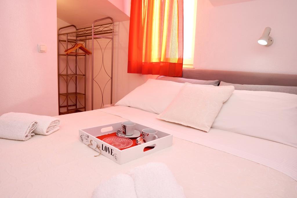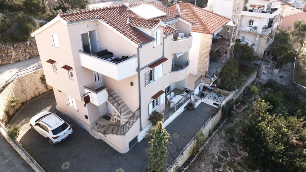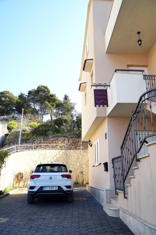 Die Apartments Cvita befinden sich auf der Südwestseite der Insel Ciovo, 700 m von der Stadt Trogir und 200 m vom ersten Strand entfernt. Zwei Apartments befinden sich im zweiten Stock des Familienhauses und das dritte im Erdgeschoss und bieten Platz für 2 bis 4 Personen. Das Apartment mit 3. Schlafzimmer befindet sich im 1. Stock. Das Studio-Apartment befindet sich im Erdgeschoss. Wohnung (6) befindet sich im Nebenhaus im Erdgeschoss. Alle Apartments haben direkten Meerblick (außer Studio). Parkplätze sind im Hof vor dem Gebäude vorhanden. Neben dem Haus gibt es einen Grill und einen Raum für eine Waschmaschine. Wir haben ganzjährig geöffnet. Herzlich willkommen!