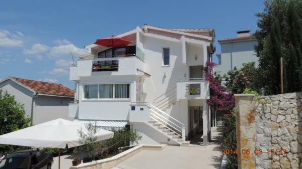 Apartments Familie - Penthouse Tanja, attraktives Haus am Meer, geeignet für Familien, kleine Gruppen und Einzelpersonen. Villa Tanja in Okrug Gornji, auf der Insel Ciovo, am Meer, in ruhiger Lage, nur fünf Minuten zu Fuß zum Strand. Der Strand erstreckt sich rund um die Bucht mit einer Länge von 2 km. Unsere Villa verfügt über zwei Luxus / Penthouse-Suiten (4 1) und ein Studio-Apartment (2 0). Im Erdgeschoss gibt es einen großen Grillplatz mit Schüsseln und Gespräche für 12 Personen. In vor dem Haus parken.