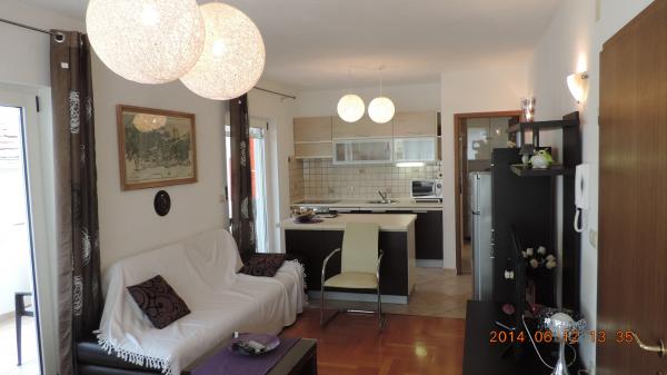 Kurtaxe ist im Preis inbegriffen.Die ursprüngliche Innenausstattung von Wohnungen, mit separatem täglichen Aktivitäten von Teilen für Ruhe und Schlaf, bietet einen angenehmen und komfortablen Aufenthalt. Penthouse Wohnungen verfügen über zwei Schlafzimmer, Küche, Wohnzimmer, Esszimmer und eine große Terrasse mit Blick auf das Meer. Split-System, Satelliten-TV, Wi-Fi, Geschirrspüler und Waschmaschine, Kaution Geld und Wertsachen, sehr wichtiges Detail Fenster haben Moskitonetze - Apartments sind mit allen notwendigen Einrichtungen, Klimaanlage ausgestattet. Die Apartments sind mit allen kleinen und großen Geräten für die Herstellung und Lagerung von Lebensmitteln benötigt ausgestattet. Unsere Villa hat zwei Luxus / Penthouse-Apartments und ein Studio-Apartment. - Apartment / Penthouse / Charles (4 1), acco