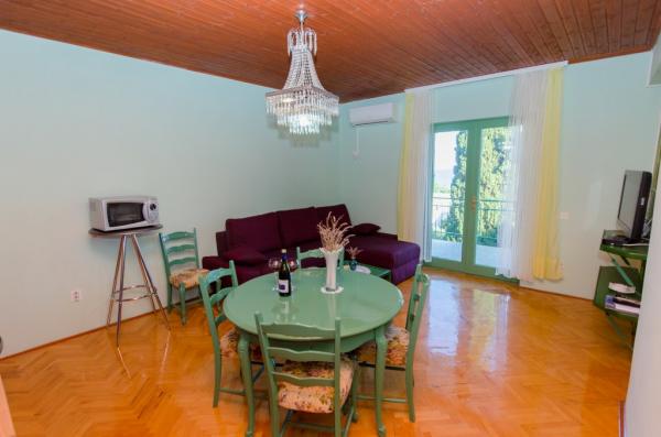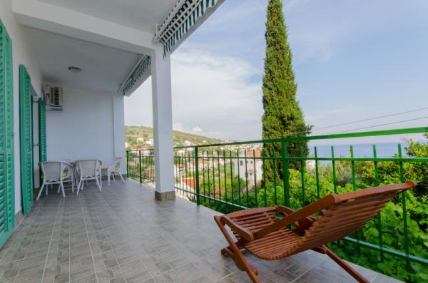 Komfortablen und geräumigen Apartments in der Bucht Detaljnije, Trogir, von viel Grün mit großzügigen Balkonen und Terrassen nach Süden auf der Westseite und einem Parkplatz umgeben.