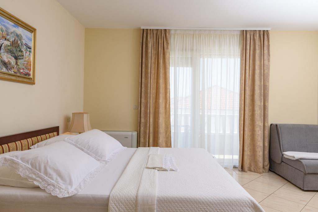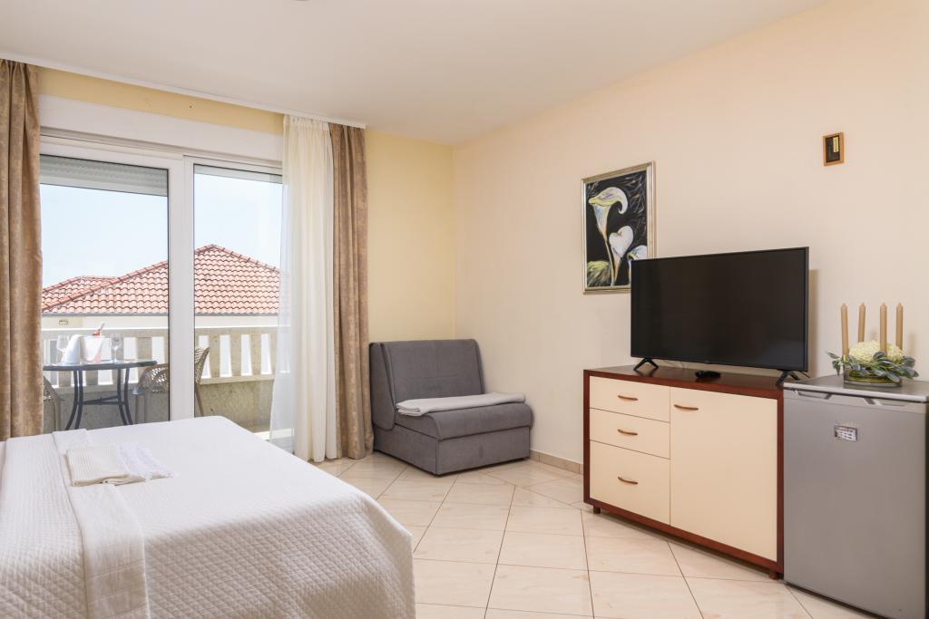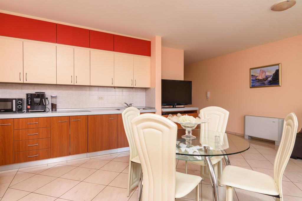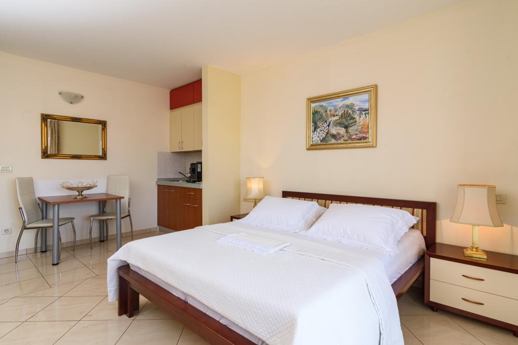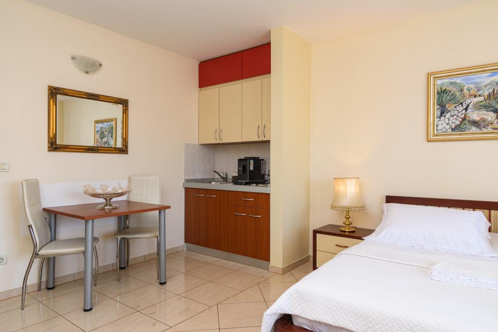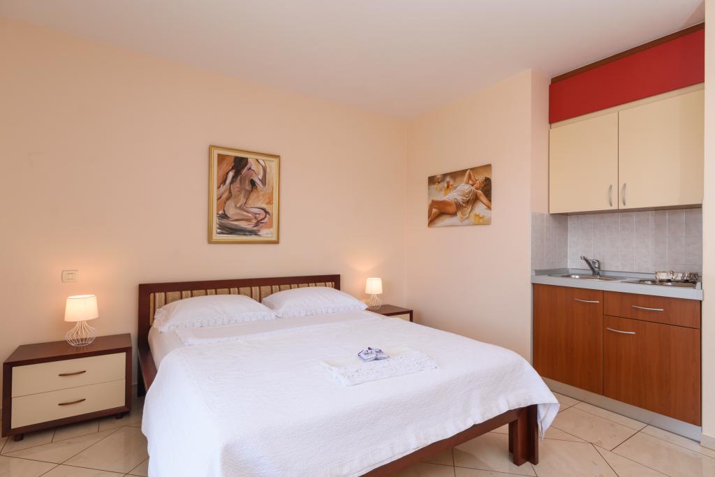 Kurtaxe ist im Preis inbegriffen.Ferienwohnung A2 Typ 2 (51m2) - Großes Wohnzimmer mit Küche und ein Bett für zwei Personen, ein Doppelzimmer, Bad und Balkon (12m2). Appartement Typ / Studio A2 1 (30m2) - Wohnraum mit Küche, Doppelbett, Sofa razvalčenje Einzelbett, Bad und Balkon (6,5m2). Appartement Typ / Studio Ferienwohnung A2 (26m2) - Wohnraum mit Küche, Doppelbett, Bad und Balkon (6,5m2). Alle unsere Gäste können einen Grill mit einem Holzofen im Garten und genießen das Mittag- und Abendessen auf den späteren Stunden in absoluter Privatsphäre. Für alle Gäste ist ein privater prakig vor dem Haus.
