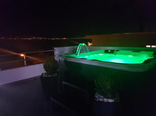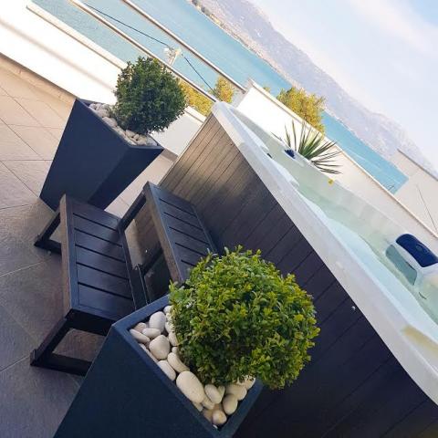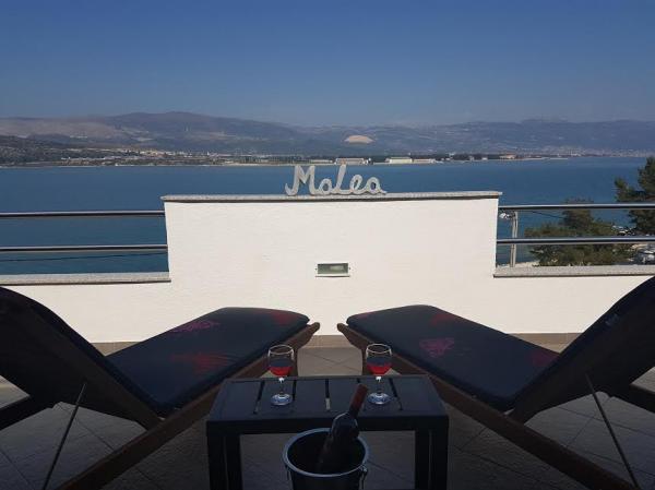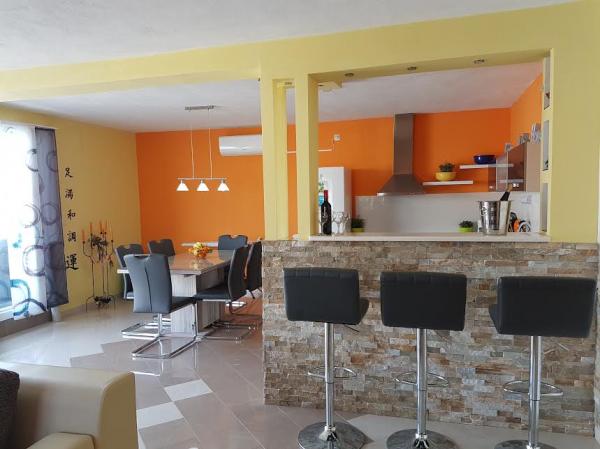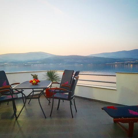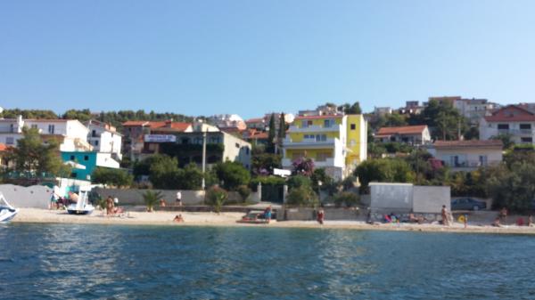 Die Wohnungen befinden sich auf der Insel Ciovo, in einem ruhigen Ort Okrug Gornji, direkt am Strand mit Meerblick. Die neu renovierten und modern eingerichteten Apartments haben eine voll ausgestattete Küche, Sat-TV und Klimaanlage, WLAN-Internetzugang ausgestattet. Luxus apartment1 (2 2) ist auf der zweiten Etage des Hauses und die Gegend ist 65m2 mit Terrasse 35m2. Diese riesige Terrasse wird ein Ort für einen unvergesslichen und einzigartigen Erinnerungen und Freuden des Sonnenbaden und Entspannen auf Liegestühlen und im Außen-Whirlpool entspannen. mit Blick auf das Meer. Luxus-Suite besteht aus einem Schlafzimmer, Bad und ein großes Wohnzimmer mit Küche. Es ist komplett neu eingerichtet mit allen Geräten. Wohnung Nr. 2 und NO. 3 (2 2) auf der 2. Etage, aber auf der anderen Seite des Hauses. Die beiden Wohnungen sind etwa 35 m2, verfügen über ein Schlafzimmer, Bad, Küche, Wohnzimmer mit Schlafsofa für zwei Personen, 5m2 Terrasse mit Meerblick. Verfügen über eine Klimaanlage, Grill und Parkplatz. Apartments sind kleine 2 km von der UNESCO-Stadt Trogir.