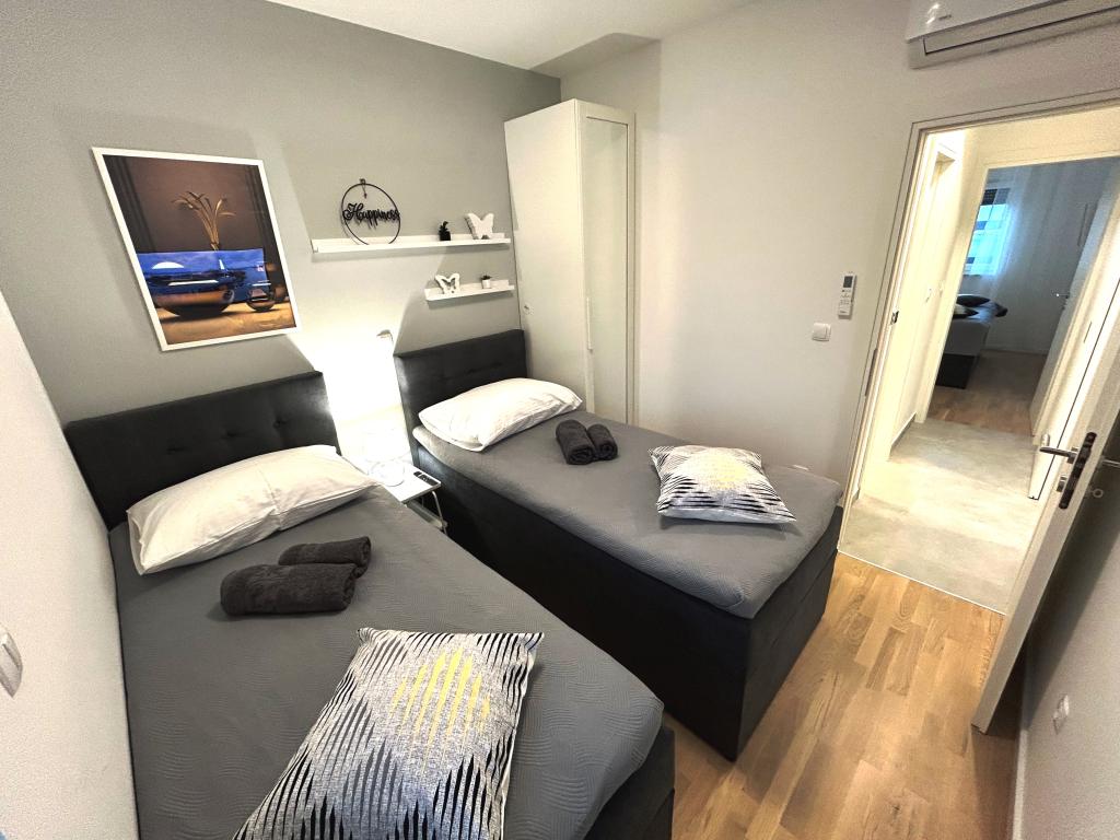 Vielen Dank, dass wir bei Ihnen übernachten durften. Die Wohnung ist sehr schön und sauber. Sie haben an alles gedacht. Wir kamen mit einem 5 Monate alten Baby, einem Kinderbett, einer Spielmatte, Bällen, einem Hochstuhl. Wir hatten alles. Marija war sehr nett und hilfsbereit. Wir kamen in einer sehr gut ausgestatteten, sauberen Wohnung mit leckeren kalten Getränken an. Wir können es nur jedem empfehlen. Sie sind sehr freundlich. Es ist in der Nähe. Der Markt, die Geschäfte, die Altstadt. Wir lieben es.