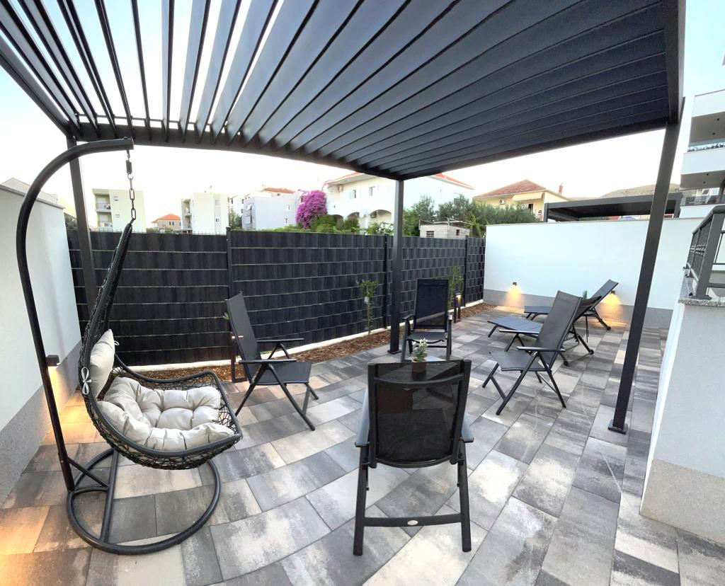 Die Apartments Town Trogir befinden sich auf dem Festland von Trogir in ausgezeichneter Lage, nur 400 m vom Zentrum der Altstadt und 1000 m vom neuen Stadtstrand entfernt. Der erwähnte Strand ist über eine Promenade am Meer entlang zu erreichen. Alle wichtigen Einrichtungen sind zu Fuß in 5 bis 10 Minuten erreichbar. Die Apartments Town Trogir sind neu und befinden sich in einem kleineren Wohngebäude mit 6 Apartments. Die Wohnungen haben eine Fläche von ca. 60 m2. Die Wohnungen befinden sich im Erdgeschoss, im 1. Obergeschoss und im 2. Obergeschoss.