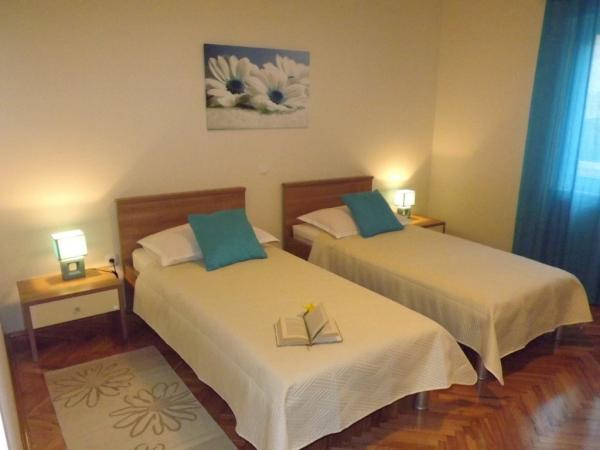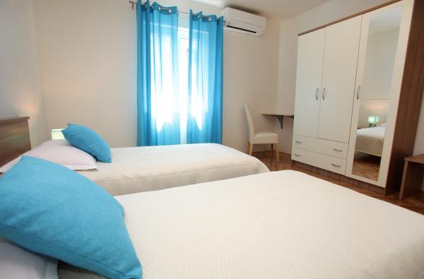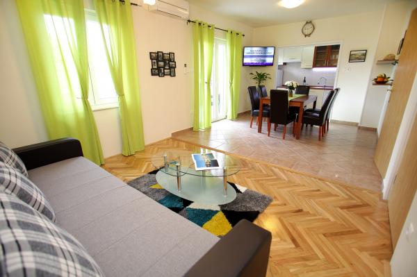 Apartment Biočić liegen in einer ruhigen Gegend der Insel Ciovo gelegen, aber nur 5 Minuten zu Fuß vom Stadtzentrum entfernt. Der Strand ist 10 Minuten zu Fuß vom Haus entfernt und es gibt eine Möglichkeit, zahlreiche andere Strand entweder mit dem Auto alle Taxi-Boote, die stündlich in der Umgebung der Anlage zu verlassen. Wohnung von 90 m2 20 m2 Terrasse und bietet komfortable Unterkunft für 6 Personen. Zwei Schlafzimmer, Wohnzimmer, Esszimmer und Küche und eine großzügige Terrasse bieten Ihnen alles, was Sie für einen komfortablen Aufenthalt in der Nähe der Stadt und doch abseits vom Lärm der Stadt brauchen. Die Wohnung ist voll klimatisiert (jedes Zimmer hat seine eigene Klimaanlage) und mit allen notwendigen Haushaltsgeräten (Waschmaschine, Geschirrspüler, Mikrowelle, Kühlschrank mit Gefrierschrank, Kaffeemaschine, Bügeleisen, Safe, TV und Wi-Fi unvermeidlich) ausgestattet, so dass Sie wirklich das Gefühl kann zu hause. Parkmöglichkeiten gibt es neben dem Gebäude sowie eine private Anlegestelle in der Nähe (kostenlos für Aufenthalte von 7 Tagen oder länger).
