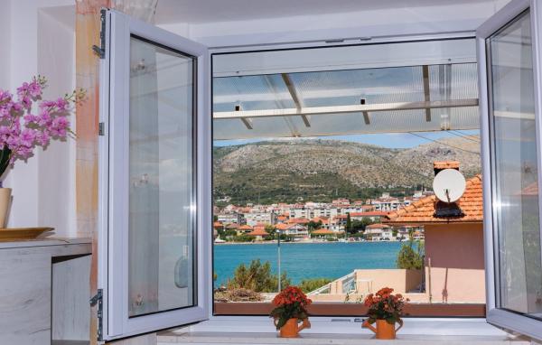 Wohnung zweiter Reihe vom Meer entfernt in einer ruhigen Gegend von Trogir, geeignet für eine große Familie mit seinen 55 m2 und zwei Balkone, die den Urlaub bis 75 m2, befindet sich 400 Meter vom Stadtzentrum und 30 Meter vom Meer und 50 Meter vom Strand erstrecken. Die Wohnung befindet sich im ersten Stock und bietet zusätzliche Sicherheit dieser mehr als die Eigentümer 50 Meter entfernt in einem anderen Gebäude leben.