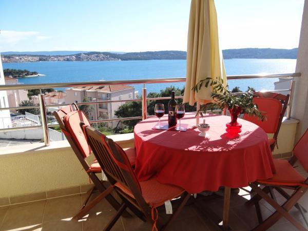 Das Apartment Marin befindet sich auf der Insel Ciovo, nur 700 m (10 Gehminuten) von der historischen Stadt Trogir entfernt, die unter dem Schutz der UNESCO steht. Die Wohnung mit Terrasse, die einen schönen Blick auf das Meer und den Kiefernwald im Moor bietet, ist nur 10 Gehminuten vom Strand entfernt. Das komfortable Apartment besteht aus zwei Schlafzimmern mit Doppelbetten, einem Badezimmer, einer voll ausgestatteten Küche, einem Esszimmer und einem Wohnzimmer. Das Apartment ist klimatisiert und verfügt über einen Fernseher mit internationalen Programmen und kostenfreies WLAN.
