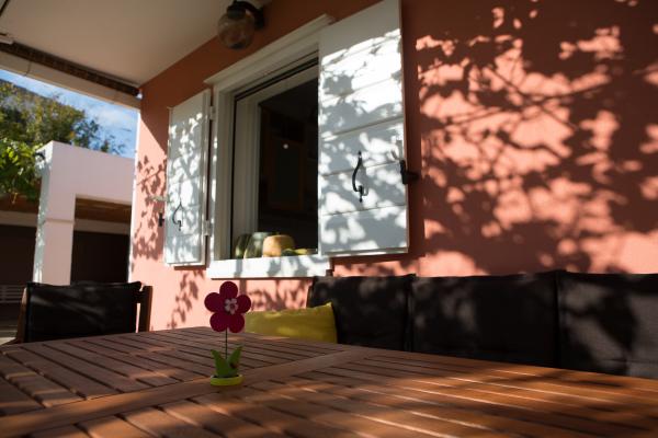 Ein gut ausgestattetes Ferienhaus in einem ruhigen Teil von Trogir, 50 Meter vom Strand und 10 Gehminuten vom Zentrum der schönen Altstadt von Trogir entfernt. Am Strand sind die gastronomischen Einrichtungen mit Sonnenschirmen und Kindereinrichtungen ausgestattet, und wenn Sie kleinere Kinder in der Nähe haben, gibt es einen schönen Sandstrand. Die Anlage verfügt über 2 private Parkplätze. Vor dem Haus befindet sich eine große Terrasse mit Weinreben und ein ökologisch angebauter Gemüsegarten, aus dem die Gäste frei bedient werden. Der Außengrill ist im Schatten der alten Orange versteckt und die Außendusche hilft, die Sommersonne zu kühlen. Die Gäste sind alleine im Haus und sind daher keiner Beeinträchtigung durch den Eigentümer oder andere Gäste ausgesetzt. Die Anlage ist mit dem Auto aus zwei Richtungen erreichbar.
